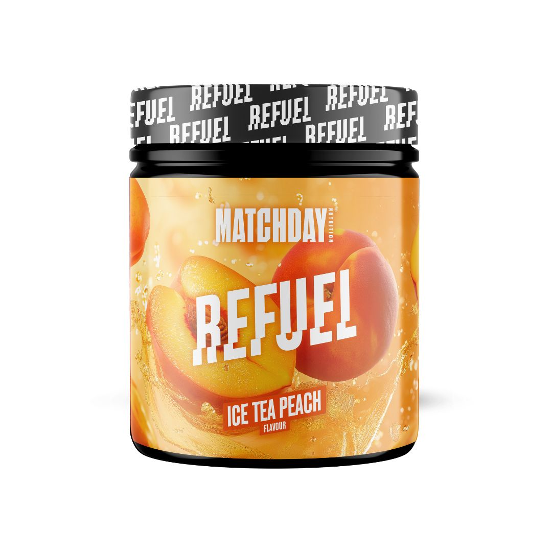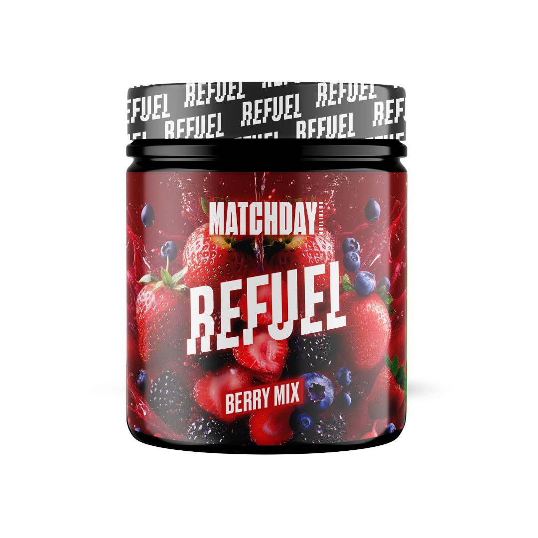 ¿Cansado de tener agujetas y piernas cansadas después del entrenamiento y partido? A menudo no tienes lo necesario para reponer tus reservas de energía inmediatamente después del ejercicio - ¡por eso hemos desarrollado REFUEL!
